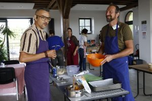 Parce que distribuer des légumes de qualité ne suffit pas à les rendre accessibles, le Réseau Cocagne et la FFBA travaillent ensemble sur l’accompagnement au changement de pratiques des bénévoles des Banques Alimentaires, des bénévoles des associations et des personnes en précarité. Pour cela, les animateur.rices « Bons Gestes & Bonne assiette » des Banques Alimentaires ont suivi la formation « Cuisines Nourricières » proposée par le Réseau Cocagne. La formation « Cuisines Nourricières » transmet les principes et techniques d’une cuisine alternative et nourricière, qui place le « mangeur » au cœur de son approche pour une qualité globale de l’alimentation. Cette qualité se décline en 4 repères ; la diversité alimentaire, le soin culinaire, la qualité des produis et le sens.